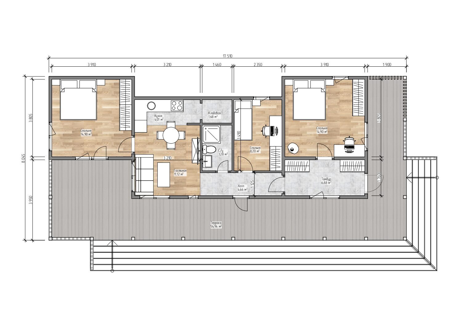 - 1. Терраса 54,94 м²
