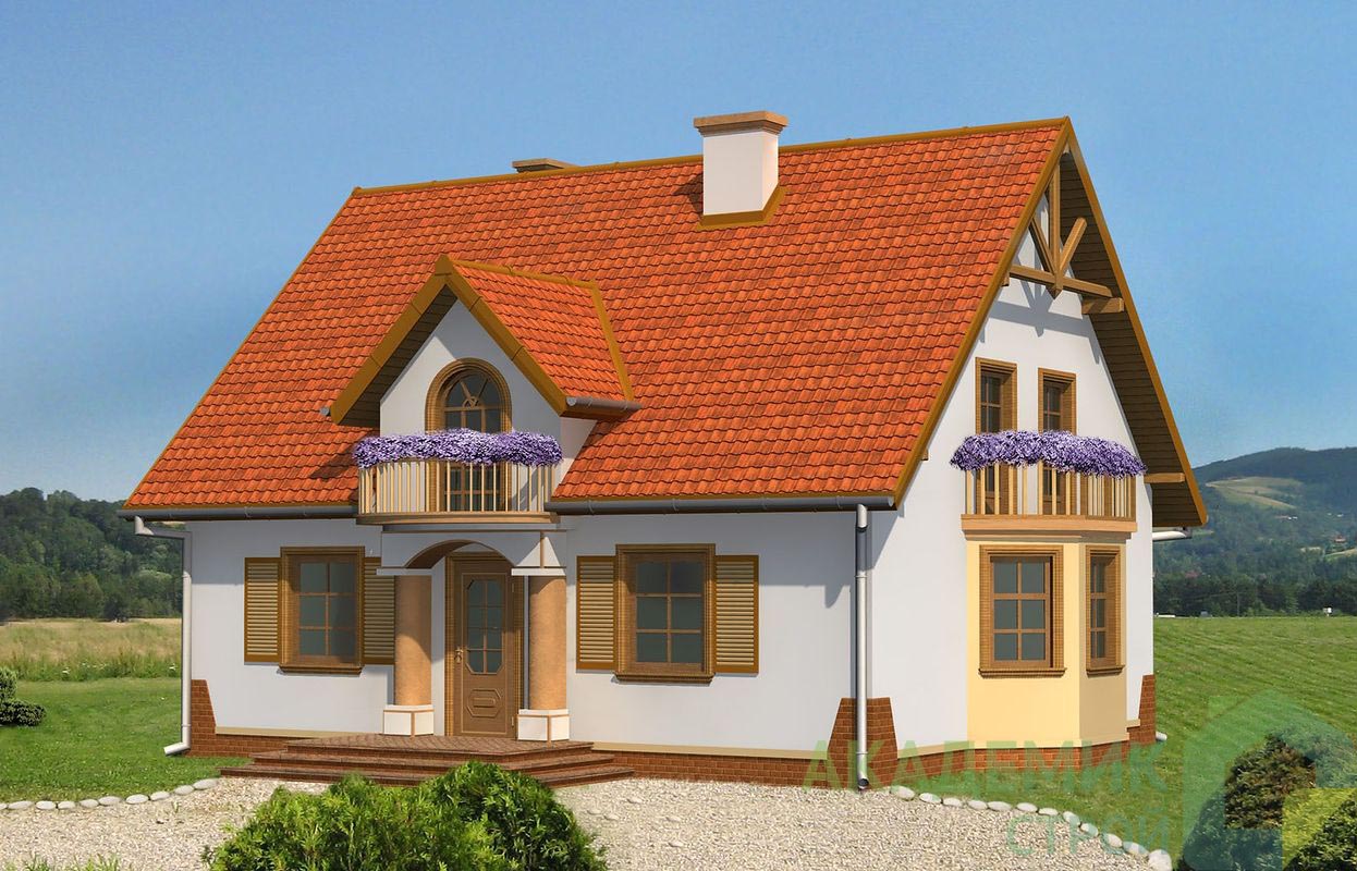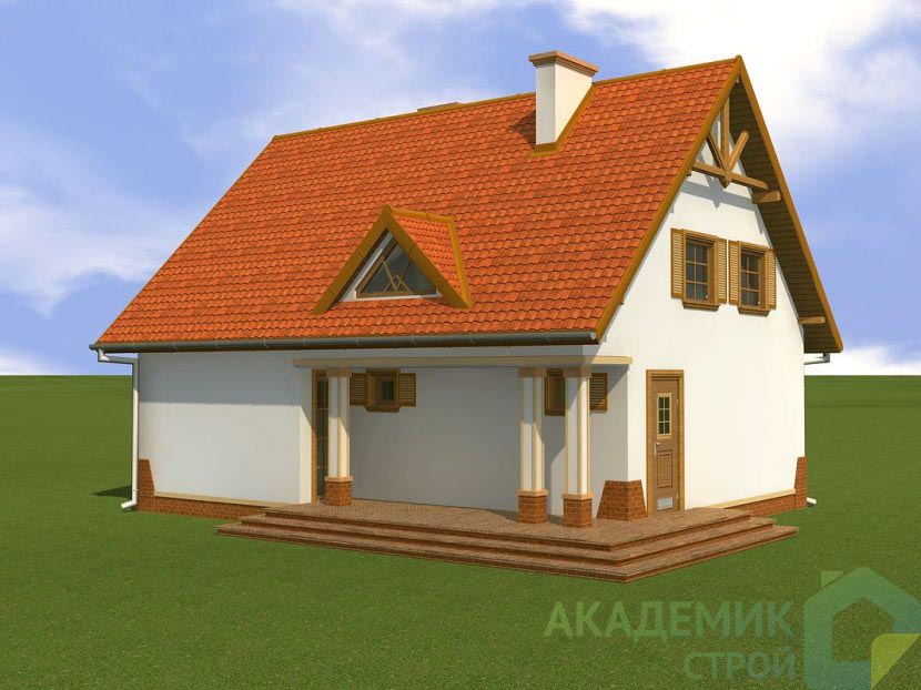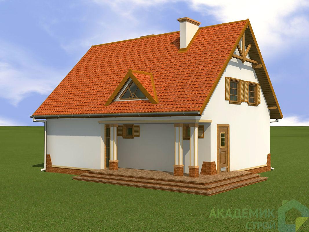 Проект дома отличается классическим, но в то же время современным архитектурным обликом. Двускатная крыша с углом наклона 45° гармонично сочетается с эркером, добавляя фасаду выразительности и эстетической привлекательности.