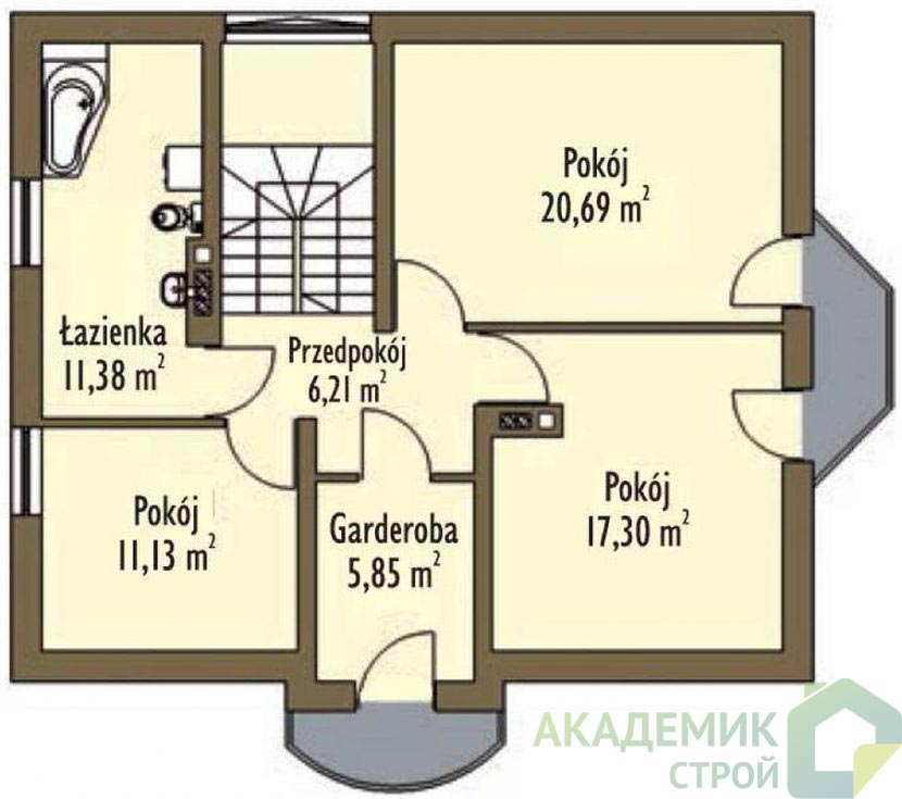 Высота здания составляет 8,86 метров, что обеспечивает достаточно помещений с высокой потолочной зоной, благоприятно влияющей на микроклимат и общее восприятие жилья. Компактные размеры дома позволяют разместить его на достаточно небольшом участке, минимальные параметры которого составляют 20,10 м в ширину и 17,30 м в длину. Это особенно важно для владельцев земли с ограниченной площадью.
