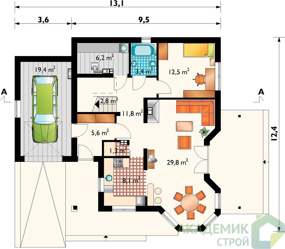 Обзор проекта: двухэтажный дом 13х13 - 178.7 м²