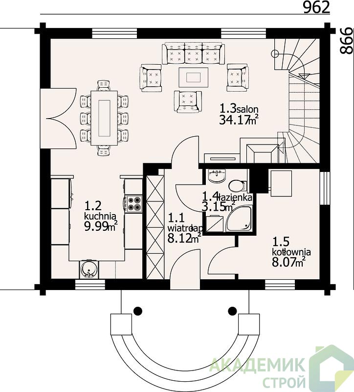 Застроенная площадь дома – 83,31 м² – влияет на то, сколько места потребуется выделить под фундамент и наружные стены. Для такого дома минимальная ширина участка должна составлять около 16,96 метра, а минимальная длина – 17,62 метра. Эти параметры важны при выборе земельного участка, чтобы обеспечить достаточное пространство вокруг дома для сада, зоны отдыха или гаража (если он запланирован в будущем).