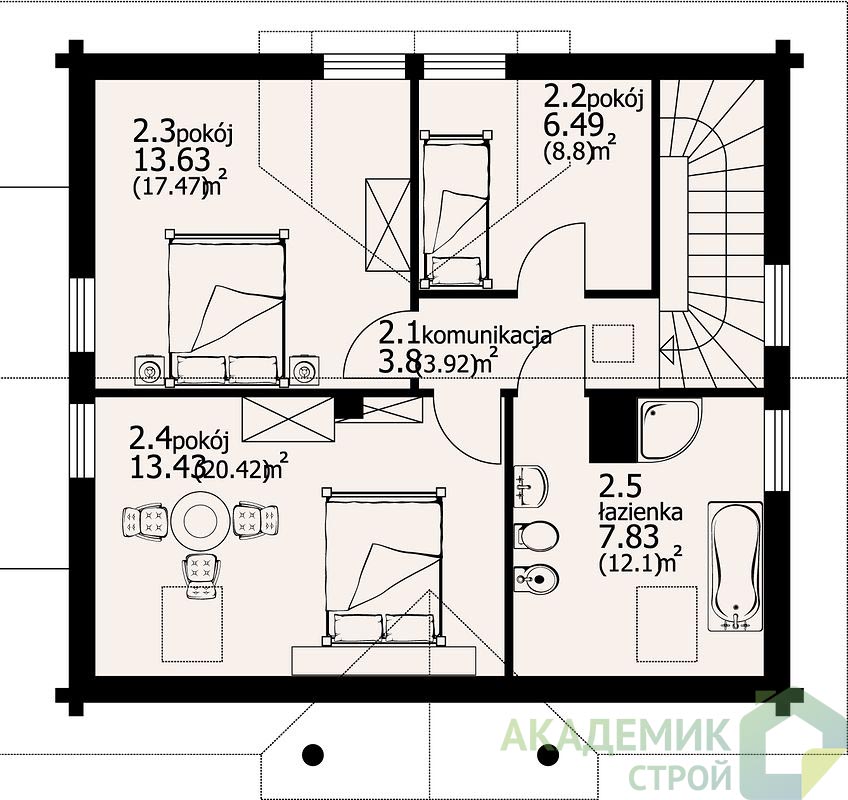 Подобный дом идеально подходит для тех, кто ценит практичность и эргономику, но одновременно хочет получить удобное и уютное пространство для жизни. Спланированные 3 спальни делают жильё максимально комфортным для семьи с детьми или для тех, кто нуждается в дополнительной комнате под кабинет или гостевую. Наличие двух санузлов значительно повышает уровень комфорта и избавляет от утренних очередей.