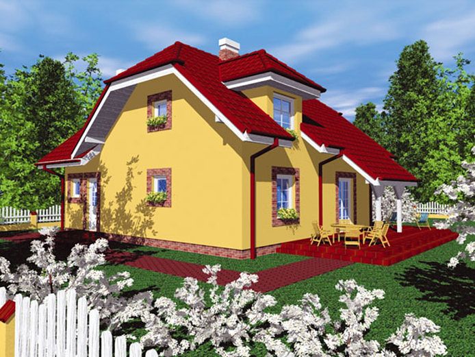 Двускатная крыша с углом наклона 35° и наличием "кукушки" обеспечивает надежную защиту от атмосферных осадков и при этом способствует хорошей вентиляции подкрышного пространства. Это существенно увеличивает срок службы кровельного покрытия и снижает риск накопления конденсата и образования плесени.