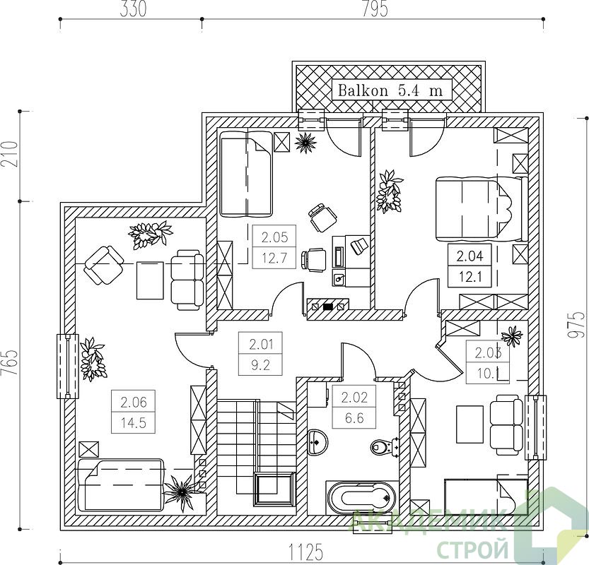Размеры дома 11 на 9 метров – это удачный вариант для рационального использования земельного участка и создания комфортного жилого пространства. По площади застройки дом занимает всего 102,5 квадратных метров, что оставляет достаточно места для организации дворового пространства, сада или зоны отдыха. Высота дома 7,94 метра при двух этажах придает зданию достойный и эстетический вид, сохраняя компактность.