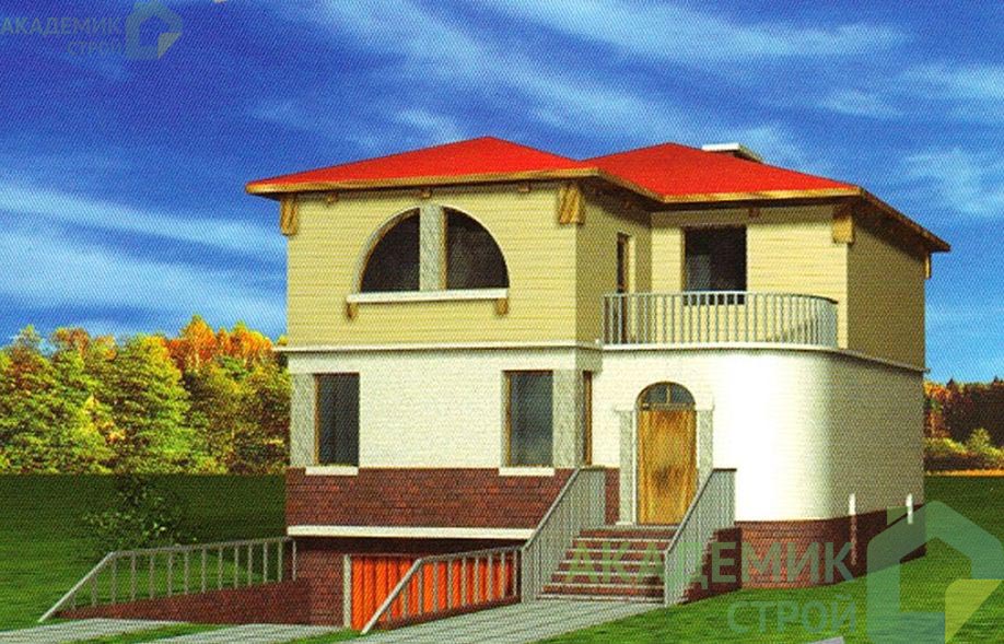 Габариты влияют и на стоимость строительства, так как площадь застройки занимает 105 м² — оптимальный параметр для того, чтобы уложиться в средние бюджеты строительства без дополнительных затрат на обустройство внешних элементов: больших фундаментных плит или сложной инсталляции коммуникаций.