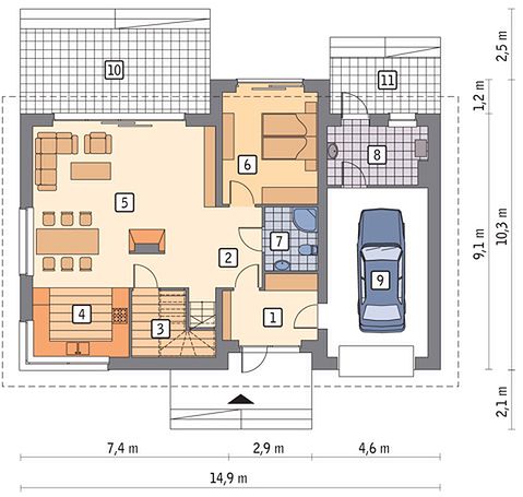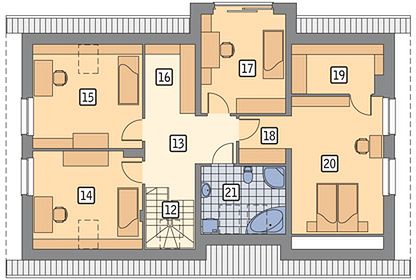 Архитектурное строение с высотой здания 7,89 м смотрится внушительно и элегантно. Учитывая двускатную крышу с углом наклона 35°, дом вписывается в наши климатические условия, обеспечивая хорошую проливную способность и защиту от снежных заносов. Многие конфигурации дома, такие как минимальные размеры участка (22,90 м в ширину и 18,30 м в длину), дают возможность комфортного размещения на стандартных участках. Каменный камин станет не только источником тепла, но и центральным элементом уюта всей гостиной.- Высота аттиковой стены: отсутствует