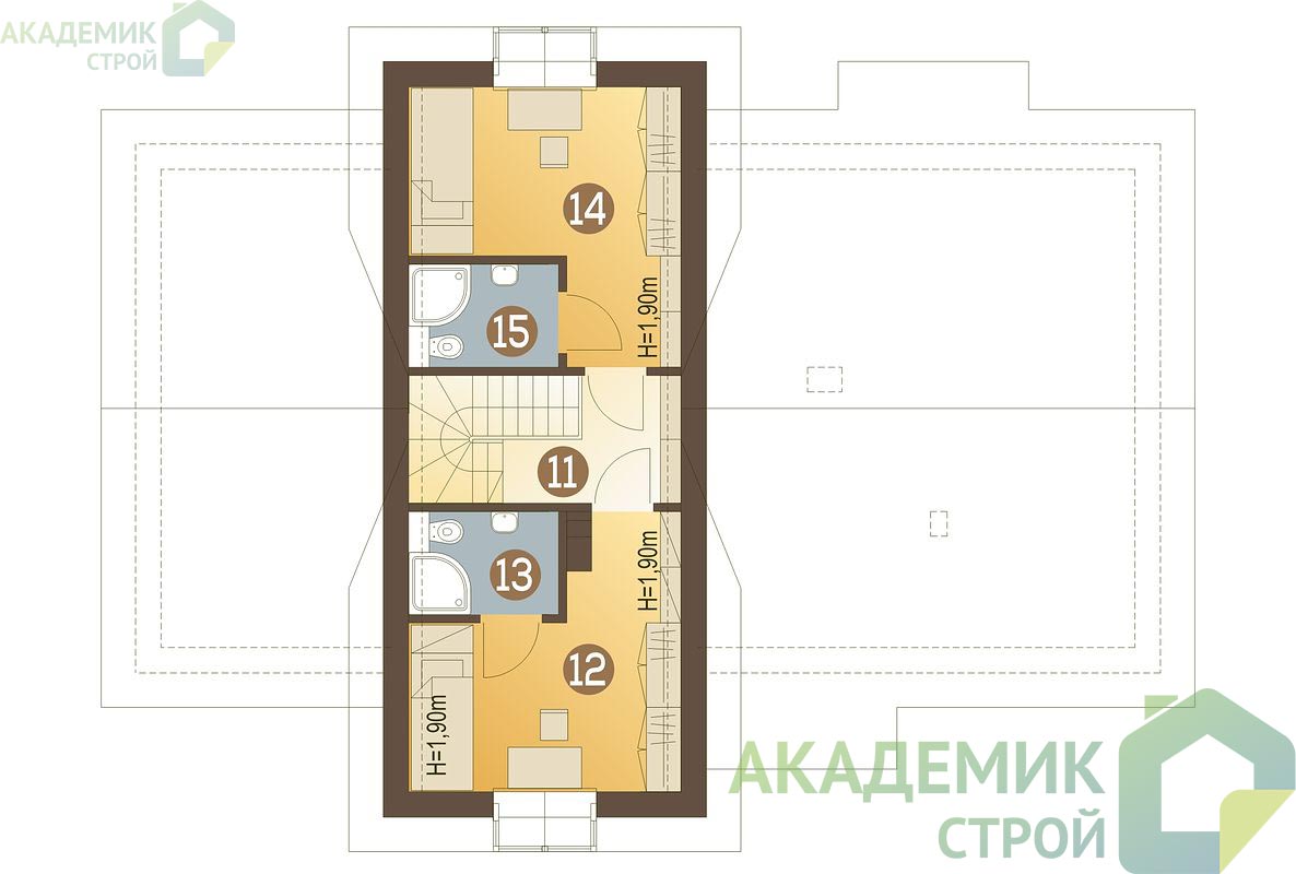 Данный проект представляет собой классическую конфигурацию с двухскатной крышей, что способствует хорошей гидроизоляции и созданию гармоничного внешнего облика. Высота здания 8,5 метров позволяет добиться комфортных потолков и оптимального объема жилого пространства, при этом не загромождая участок. Размеры дома 14 на 12 метров обеспечивают достаточно пространства для оформления комнат и свободного передвижения внутри, при этом сам дом занимает на участке площадь 131 м², что важно для правильного размещения дома относительно границ участка.