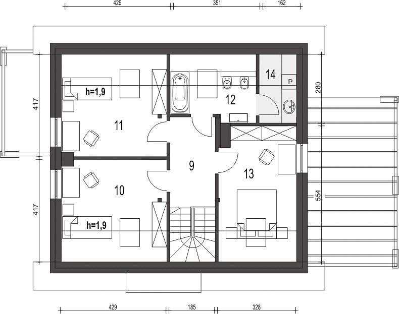 Двухэтажный дом 12х9 создаёт комфорт для всех членов семьи за счёт тщательно продуманной внутренней планировки. В доме предусмотрено 3 спальни, что идеально подходит как для семей с детьми, так и для приема гостей. Каждая спальня обладает достаточным пространством для отдыха, хранения вещей и организации личного пространства.