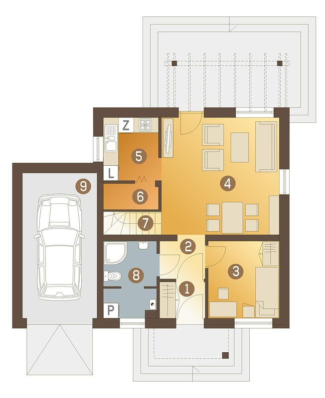 Большая часть жилой площади отведена под зоны, где семья проводит больше всего времени. Открытые и светлые гостиная и кухня позволяют удобно принимать гостей и собираться всей семьей. Остальные помещения – спальни, кабинет или игровой уголок – располагаются таким образом, чтобы предоставить каждому члену семьи необходимую приватность.