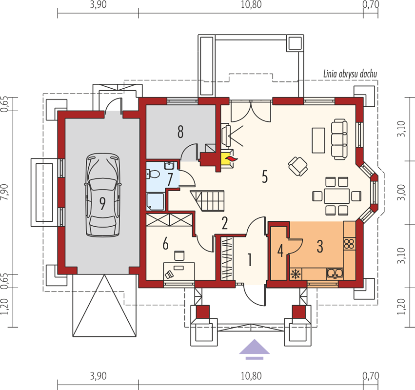 - Удобное разделение публичных и приватных зон дома;