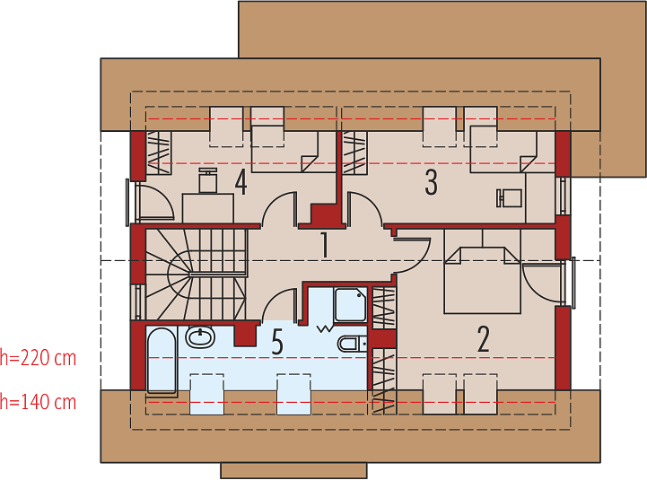 Площадь застройки комплекса составляет 105,54 м², что помогает четко понять размеры фундамента и крыши. Всего площадь крыши — 141 м², что объясняется не только площадью дома, но и особенностями формы кровли.