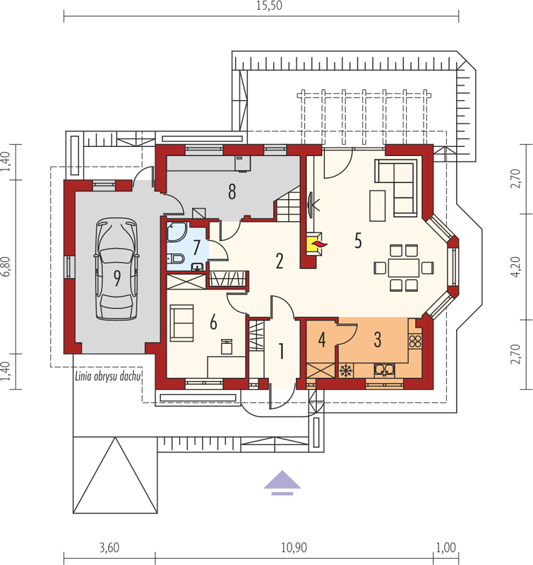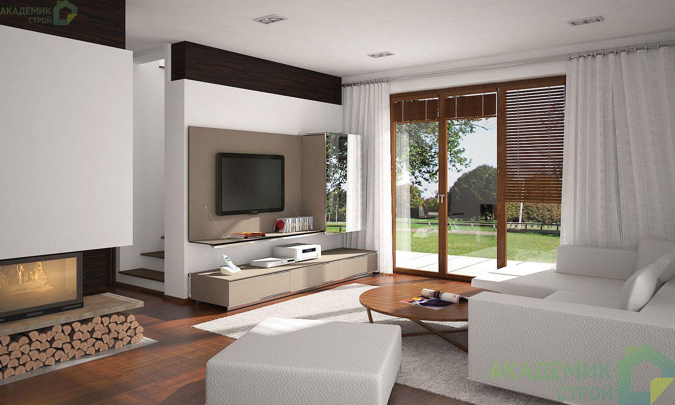 Компания «Академик Строй» предусмотрела в проект опции, которые сделают ваш дом более уютным и функциональным. Среди них — камин, который станет центром домашнего очага и источником уюта в холодные зимние вечера. Также предусмотрена комната на первом этаже, которую можно использовать как кабинет или гостевую спальню. Не обошлось и без террасы — любимого места для утренних кофе и вечернего отдыха. Эркер, помимо улучшения внешнего вида, увеличивает пространство и наполняет комнату естественным светом.