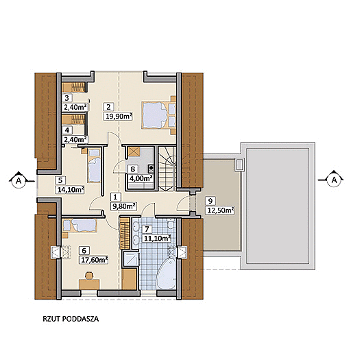 Двускатная крыша с углом наклона 38° – классическое решение, которое подходит для большинства климатических условий нашей страны. Она отлично отводит осадки, предотвращая скопление снега, а также создаёт дополнительное пространство в мансарде, которое при необходимости можно оборудовать под служебные или жилые помещения. Высота здания в 8,52 метра подчеркивает его солидность, при этом не нарушая гармонию с окружающей застройкой в частном секторе.
