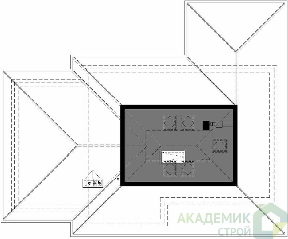 двускатную крышу сложной формы с вальмовыми скатами. Такой Roof design не только придает дому оригинальность, но и обеспечивает лучшую защиту от осадков, а угол наклона 36° — оптимальное решение для московского климата, где снег и дождь нередки.