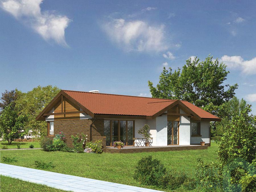 Одноэтажное строение сопоставимо с двухэтажным по площади, но, как правило, имеет меньше теплопотерь через стены и перекрытия. Благодаря двускатной крыше с углом наклона 25°, строение надежно защищено от осадков и эффективно отводит снег и дождь. Высота дома 5,22 метра позволяет сохранить эстетичный внешний вид и уютность внутри.
