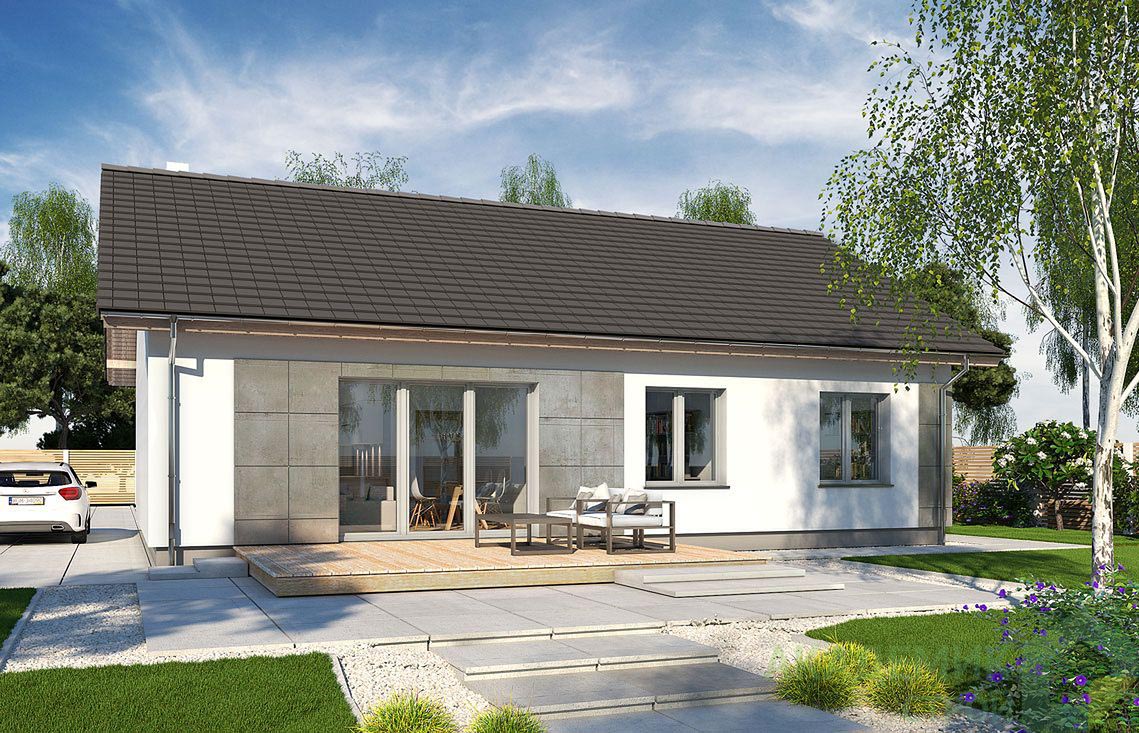 Благодаря отсутствию гаража площадь дома используется максимально рационально, а компактные размеры экономят место на участке и упрощают уход за территорией.