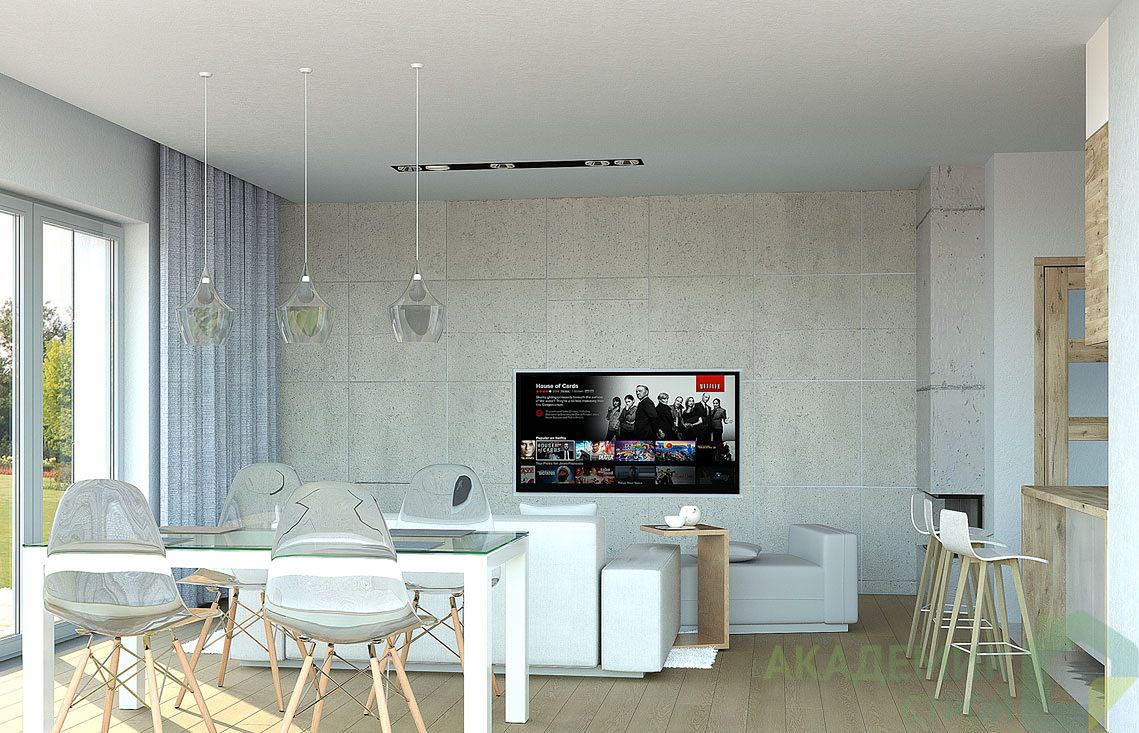 Один из важных плюсов этот дома — опция камина. В холодные московские вечера он не только создаст атмосферу уюта, но и станет дополнительным источником тепла. Камин в проекте гармонично интегрирован в гостиную, что позволяет максимально использовать его потенциал и наслаждаться живым огнем.