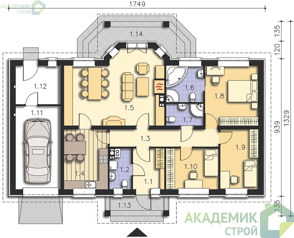 Ведь согласитесь, когда вы собираетесь строить дом, хочется не просто крыши над головой, а пространства, где каждый член семьи будет чувствовать себя комфортно. Дом с одним этажом упрощает быт: никаких лестниц, упростится планировка, а значит и ремонт со временем не станет головной болью. Мы подробно расскажем, почему именно проект от компании «Академик Строй» — это разумный выбор, а сама планировка и особенности дома отвечают требованиям современного городского жителя.