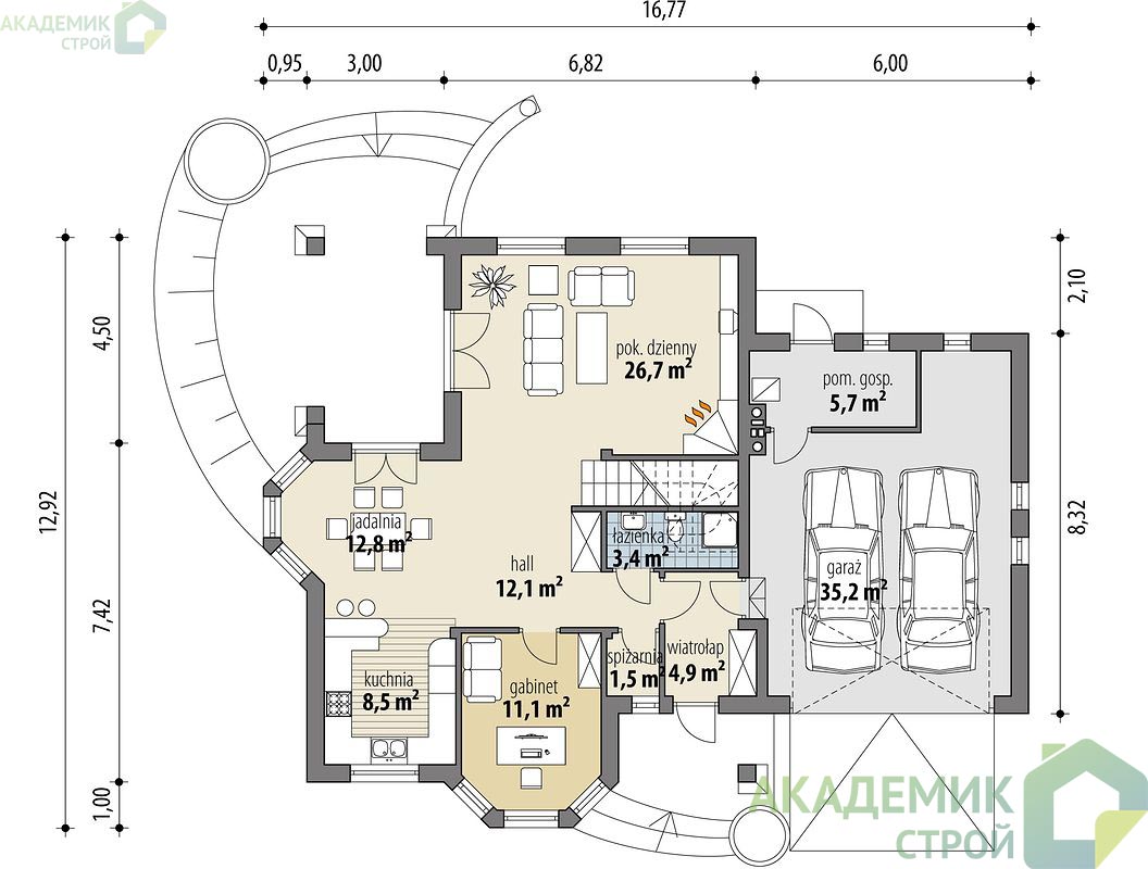 Проект дома такого уровня обычно стоит намного меньше самостоятельного разработки архитектурного плана, при этом вы получаете полный комплект документов, готовых для строительства. Компания "Академик Строй" предоставляет выгодную цену и удобные условия заказа.