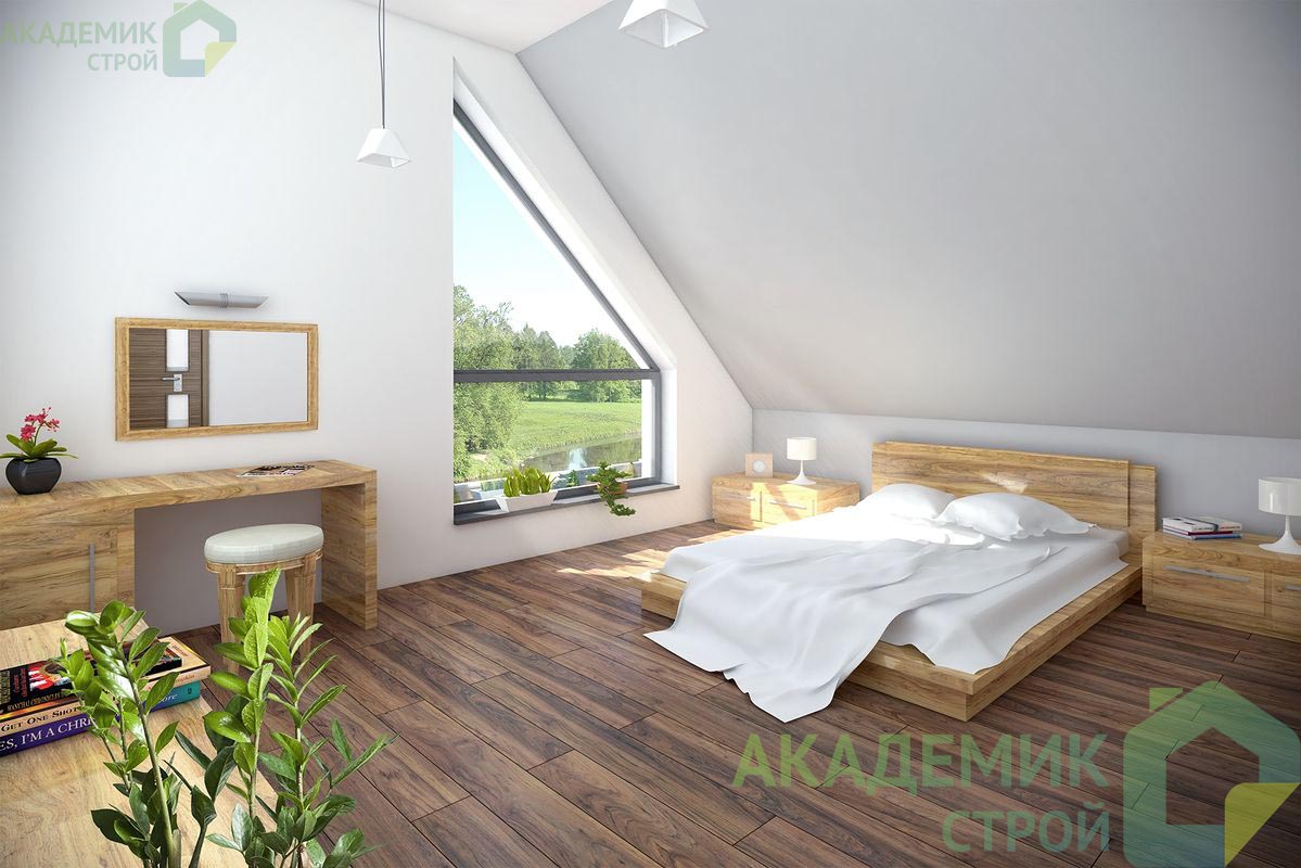 Современная архитектура проекта ориентирована на классику с элементами современной стилистики. Двускатная крыша с углом наклона 45° обеспечивает быстрое сходство снега в зимний период, а также допускает создание дополнительного чердачного пространства.