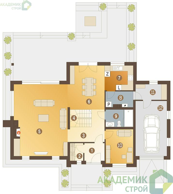 - Главный вход с юга (идеальное решение для придомовой территории);