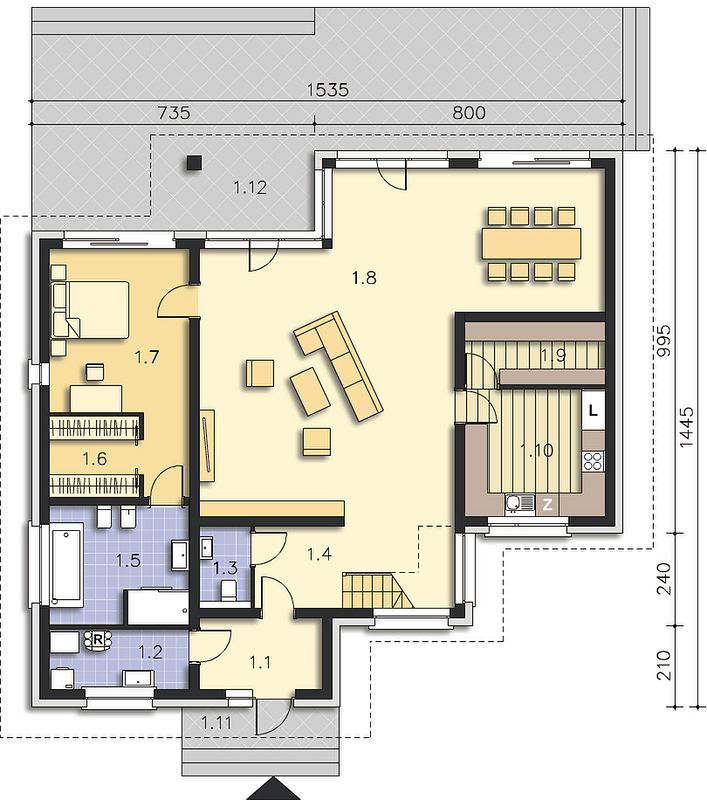Все больше домовладельцев осознанно делают выбор в пользу дома без встроенного гаража. Почему? Во-первых – это безопасность. Гараж и дом чаще всего должны быть раздельными по требованиям пожарных норм, что важно при семейном проживании. Во-вторых, отсутствие гаража освобождает пространство, позволяя увеличить размеры комнат, зону кухни и гостиной, предусмотреть просторную террасу.