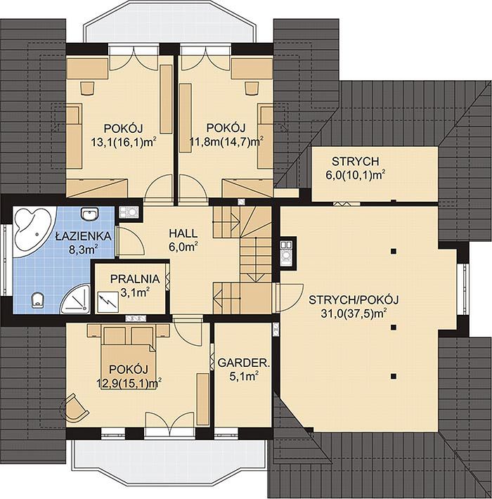 Для семьи с маленькими детьми важно наличие отдельной детской, для родителей — личной спальни, для подсобки — гостевой комнаты. На первом этаже традиционно располагается большая общая зона, где приятно собираться всей семьёй или устраивать праздники. Наличие санузла на каждом этаже решает проблему очередей по утрам, а отдельная комната на первом этаже подойдет для старших родственников или гостей, которым сложно подниматься по лестнице.