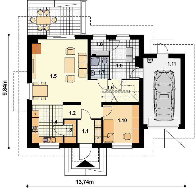 Габариты вашего будущего дома — основа комфорта, уюта и рационального использования земли. Дом размером 13 на 10 метров прекрасно вписывается в рамки большинства частных подмосковных участков, при этом остаётся внушительно просторным внутри.