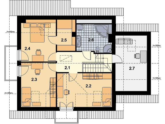 Удобство и комфорт — основные составляющие проектирования современного частного дома. В проекте от "Академик Строй" предусмотрено четыре спальни — три на втором этаже и одна на первом, которая может быть переоборудована под рабочий кабинет или гостевую комнату. Это оптимально для семьи из 4–6 человек.