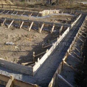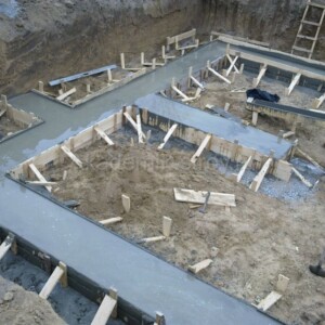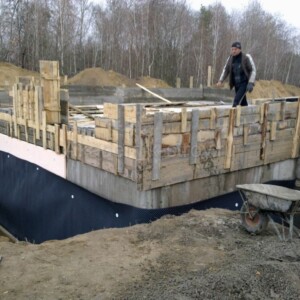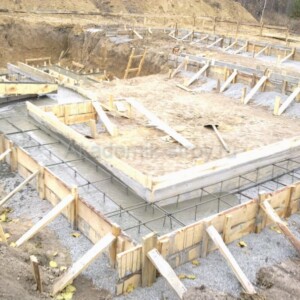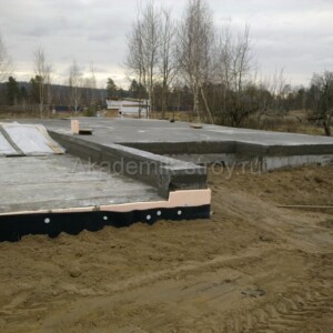 Фундамент для таких габаритов может быть мелкозаглублённым с армированными лентами или сплошной плитой, особенно если предполагается подземный уровень. Плита даёт высокий уровень жёсткости и равномерное распределение нагрузки, что удобно на сложных грунтах.