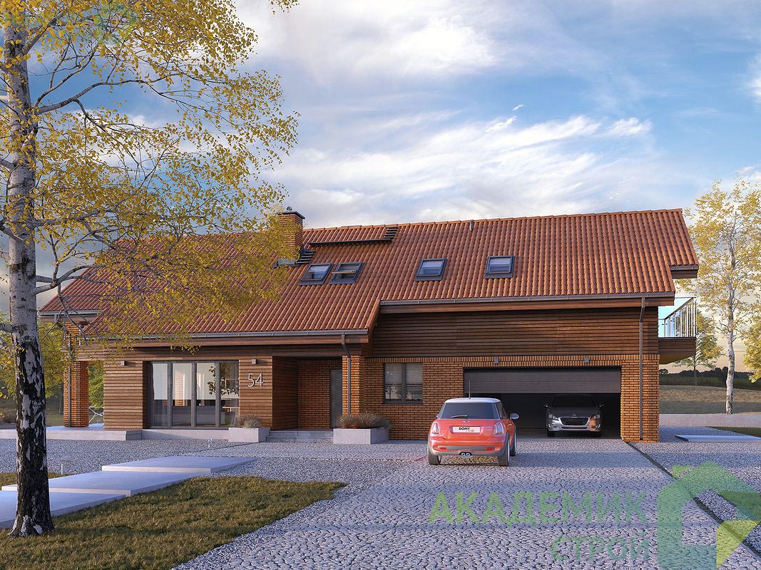Двускатная крыша с углом наклона 35° — классическое решение, отлично подходящее для российских климатических условий. Такая кровля позволяет легко очищать крышу от снега и дождя, уменьшает риск протечек и обеспечивает оптимальную теплоизоляцию верхнего этажа.