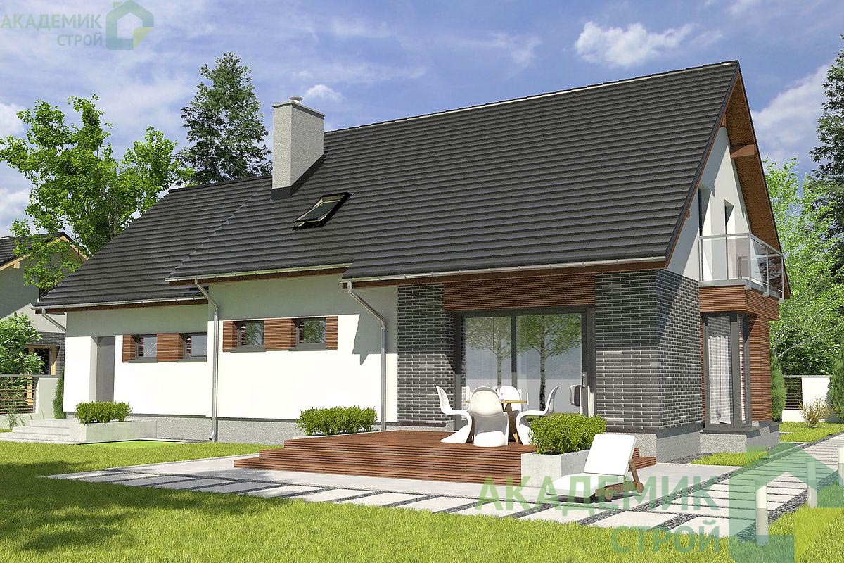 Хотя в проекте не предусмотрен гараж, терраса и эркер добавляют эстетики и функциональности. Терраса станет отличным местом для отдыха на свежем воздухе, приема гостей и семейных мероприятий, не выходя из дома. Эркер расширяет внутреннее пространство помещений за счёт выступающей конструкции, увеличивая свет и визуально разбавляя фасадную плоскость.