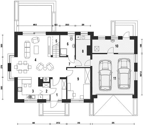 Этот проект идеально подходит для большой семьи или для тех, кто планирует жить с родственниками, обеспечивая приватность и комфорт каждому. Здесь продуман каждый квадратный метр: пять просторных спален, две ванные комнаты, удобные жилые и технические зоны.