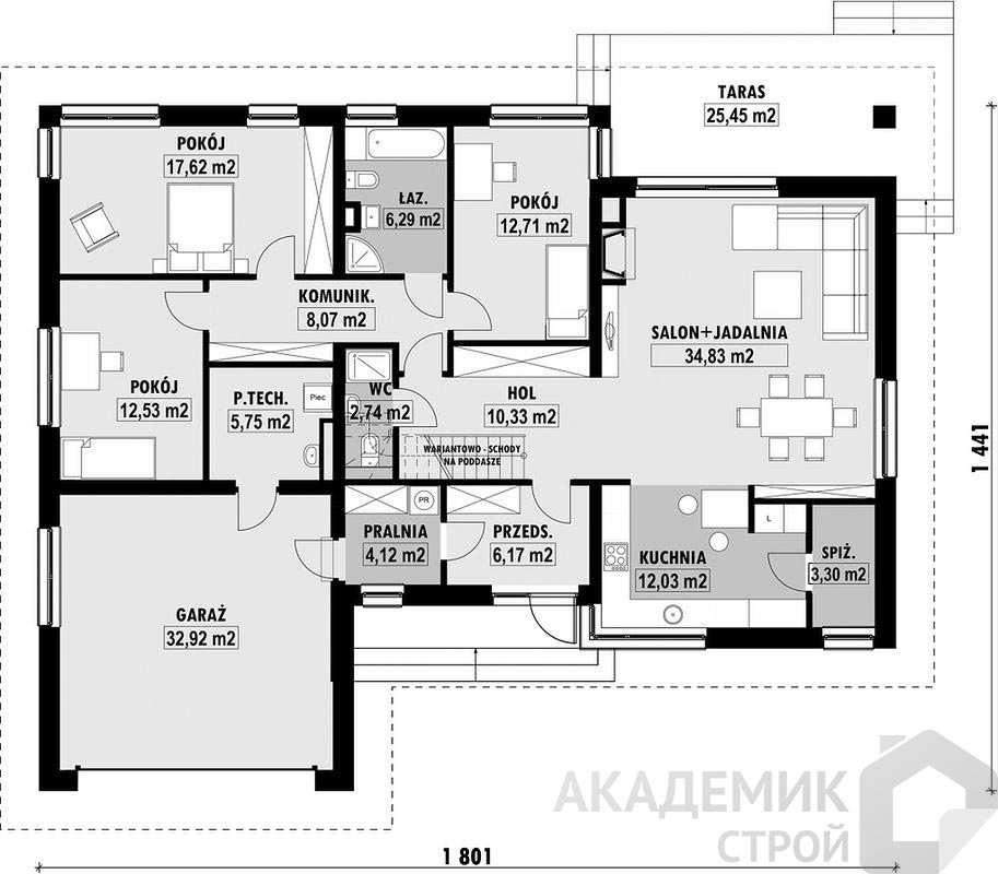 Тут проект от «Академик Строй» действительно радует своей реалистичностью: минимальные размеры участка для этого дома – 26 метров в ширину и 23,4 метра в длину. Это не так уж много, учитывая популярные размеры дачных участков и городских земель под индивидуальное строительство.