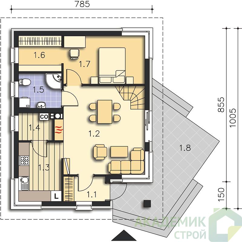 Что же вы получаете внутри такого дома? Компания "Академик Строй" предлагает грамотную планировку с учётом всех современных трендов и пожеланий клиентов.