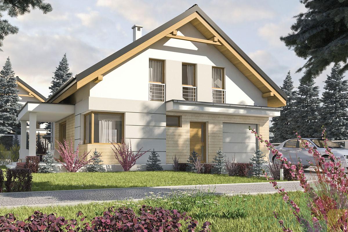 Проект рассчитан на два этажа, что идеально подходит для семей, которым необходимо разделить дневные и ночные зоны. На первом этаже, как правило, располагается зона общего пользования — гостиная, кухня, столовая — а на втором — спальни и места для отдыха всех членов семьи. Наличие двух этажей позволяет значительно увеличить жилую площадь, не занимая при этом слишком большой участок земли.