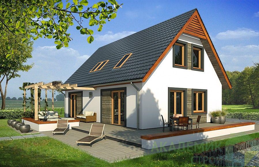 Нельзя не отметить и привлекательный дизайн с двускатной крышей, который подчеркивает классический, но современный облик дома, легко вписывающегося в любую жилую среду.