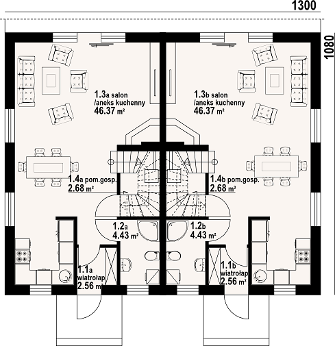 Стоит отметить, что площадь застройки дома 140,40 м² — это площадь, которую строение занимает на участке. С учетом размеров дома 13 х 11 метров, оставшееся пространство можно использовать для организации придомовой территории, включая сад, парковку и зону отдыха.