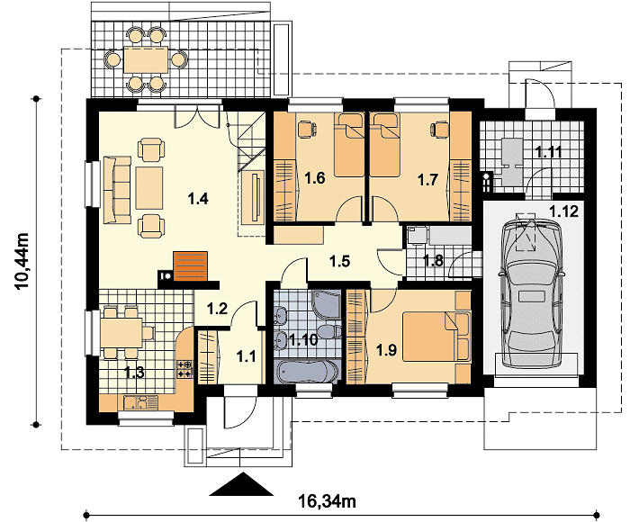 Размеры дома 15 на 11 метров создают достаточно просторное пространство, но при этом не требуют для строительства слишком большого земельного участка. Минимальные требования к участку здесь 23,34 метра по ширине и 19,04 метра по длине. Это позволяет очень выгодно использовать городские или пригородные земельные участки со средней площадью – не нужно приобретать лишнюю землю, переплачивая и теряя время.