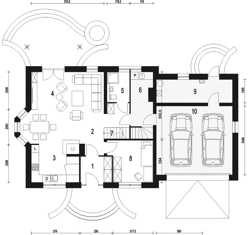 - Терраса и эркер — архитектурные акценты, которые создают дополнительные места для отдыха и позволяют максимально насладиться видом участка и сада.