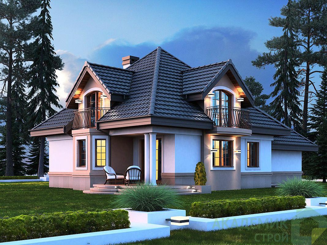 - Разумное использование участка. Несмотря на достаточно внушительную площадь дома, минимальные размеры участка остаются приемлемыми для тех, кто хочет построить полноценное жилье с прилегающей территорией.