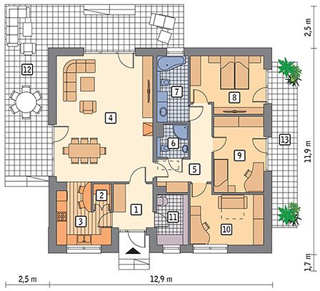 Планировка и особенности одноэтажного дома 13х12 м