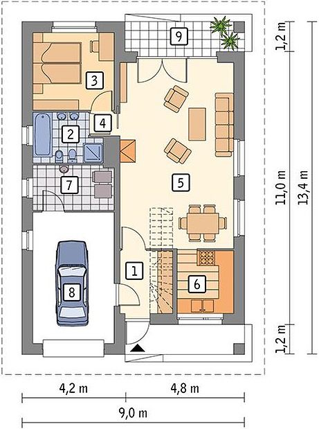 Планировка дома размером 9 на 13 метров — это классическое сочетание, которое прекрасно подходит для семьи, желающей получить комфортабельное жилье без излишеств. При общей полезной площади 83.9 м² дом не кажется громоздким, но при этом позволяет достаточно просторного внутреннего пространства. Важно отметить, что в таких размерах можно четко планировать размещение жилых и вспомогательных помещений, не теряя территории двора.