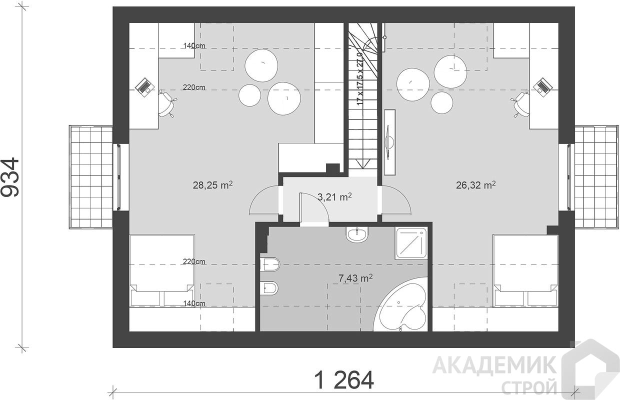 Второй этаж традиционно предназначен для приватной зоны с четырьмя спальнями и санузлом. Такое разделение помогает разделить дневную и ночную активность, поддерживает уровень комфорта для всех домочадцев и дает возможность отдыха без помех.