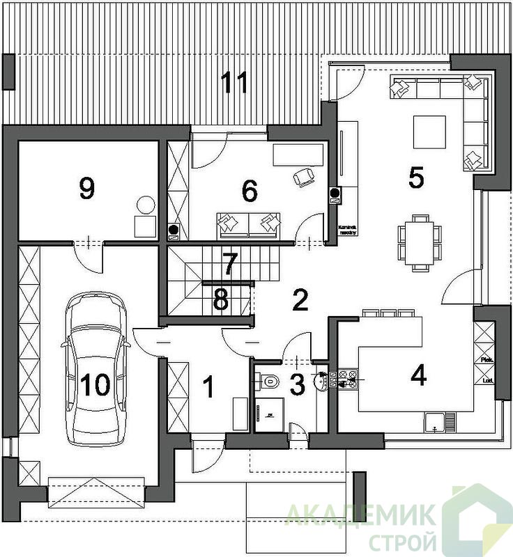 В проекте предусмотрены нестандартные, но очень комфортные опции, которые значительно повышают качество жизни в доме.