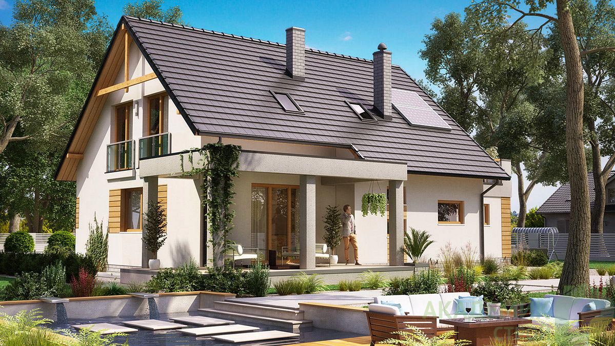 Терраса, включенная в проект, значительно расширяет жилую площадь в теплое время года, позволяя проводить вечера на свежем воздухе в семейном кругу или с друзьями. Это не только дополнительная зона отдыха, но и элемент, придающий фасаду дома законченный и привлекательный вид.