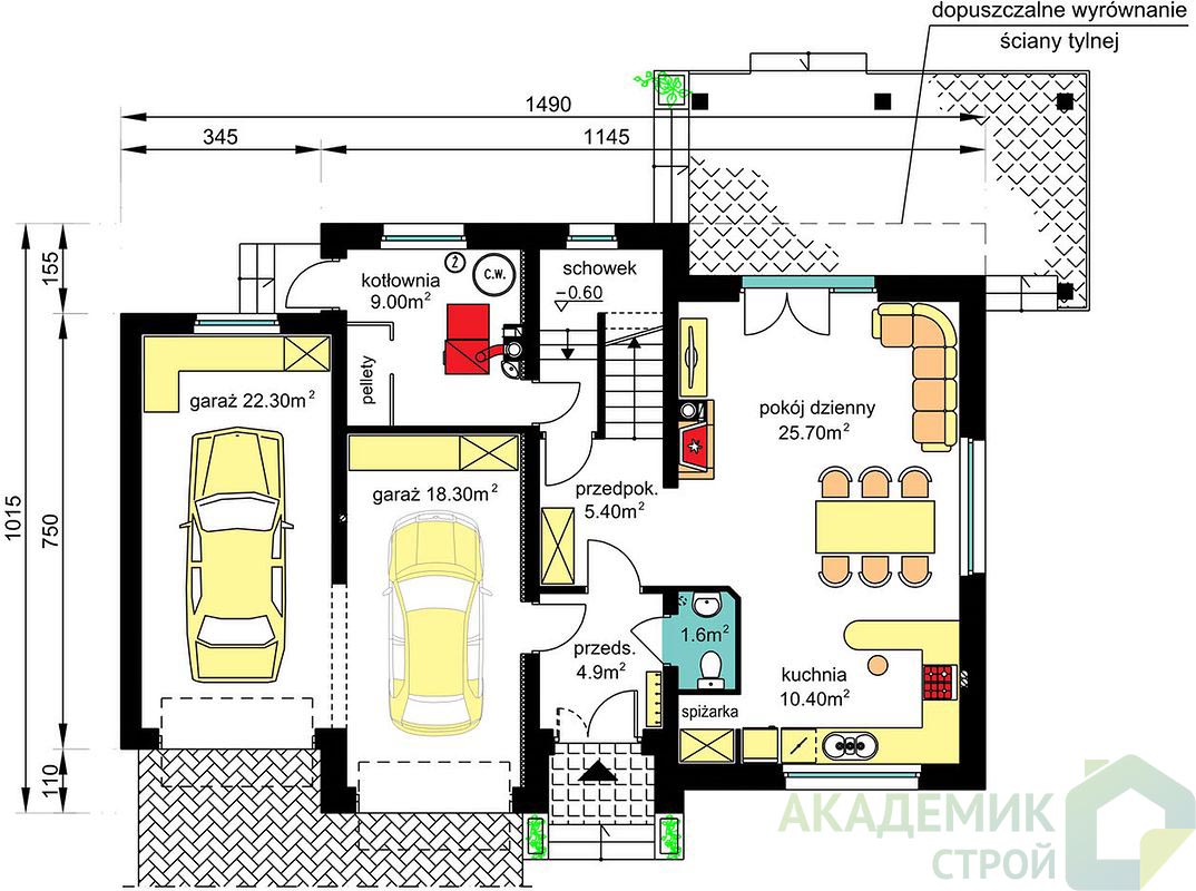 Минимальные размеры участка для строительства такого дома составляют 22 метра по ширине и 20,4 метра по длине. Эти параметры позволяют обеспечить не только размещение постройки, но и организацию озеленения, подъездных путей и зоны отдыха на свежем воздухе.