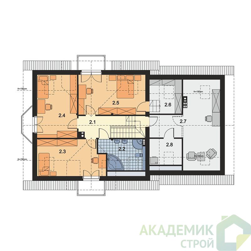В доме два санузла — это ориентирована на удобство повседневной жизни. Когда вся семья вместе, два санузла значительно повышают качество жизни, нет очередей и неудобств. При этом планировку проектов от "Академик Строй" можно адаптировать с учетом ваших пожеланий.