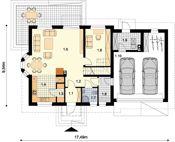 Площадь застройки дома — 154,54 м² — это площадь, которую дом занимает на земельном участке. Это важный параметр, который помогает оценить, сколько места останется для участка, сада, зон отдыха или детской площадки.