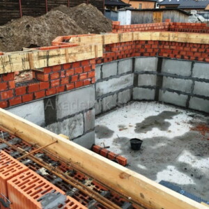 Глубина заложения, армирование и бетон М300–M350 подбираются с учётом снеговой и эксплуатационной нагрузки. При проектировании следует учитывать размещение подвала или подполa: при его отсутствии проще и дешевле выполнить мелкозаглублённый ленточный фундамент.
